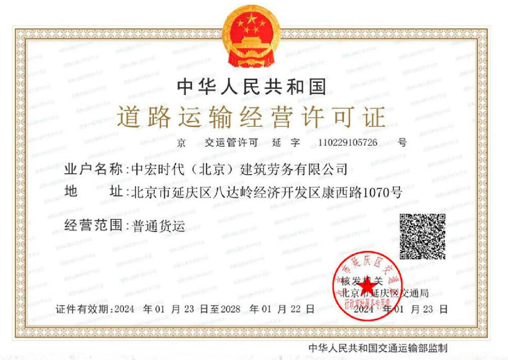 中宏時代(北京)建筑勞務有限公司資質